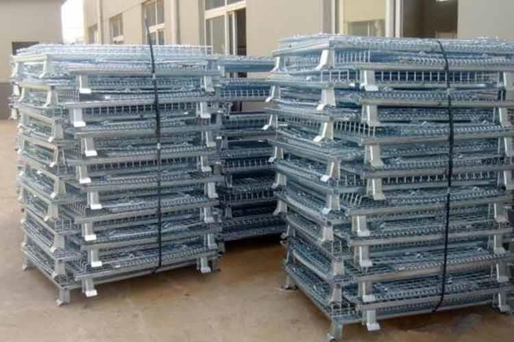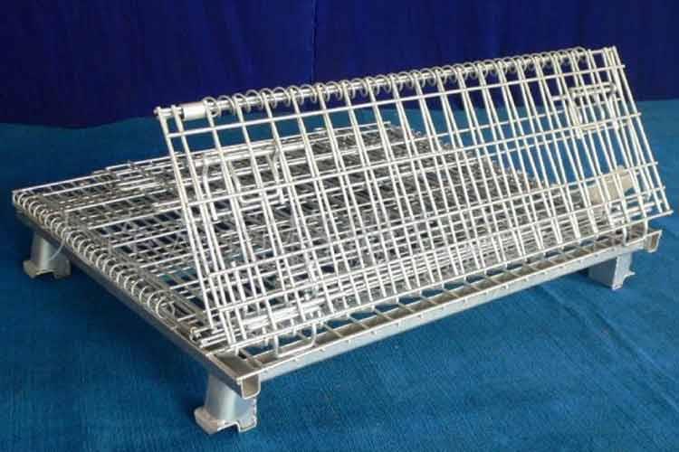 可折疊蝴蝶籠的主要原材料是高線拉成的鋼絲,一般絲徑是5mm,6mm,6.4mm。網(wǎng)片焊接的網(wǎng)目間距一般為50×100,100×100,50×50。折疊式倉(cāng)庫(kù)籠采用U型鋼焊接而成,U型鋼是冷軋帶鋼軋機(jī)軋制而成,底部四角采用沖壓件一次沖制而成。